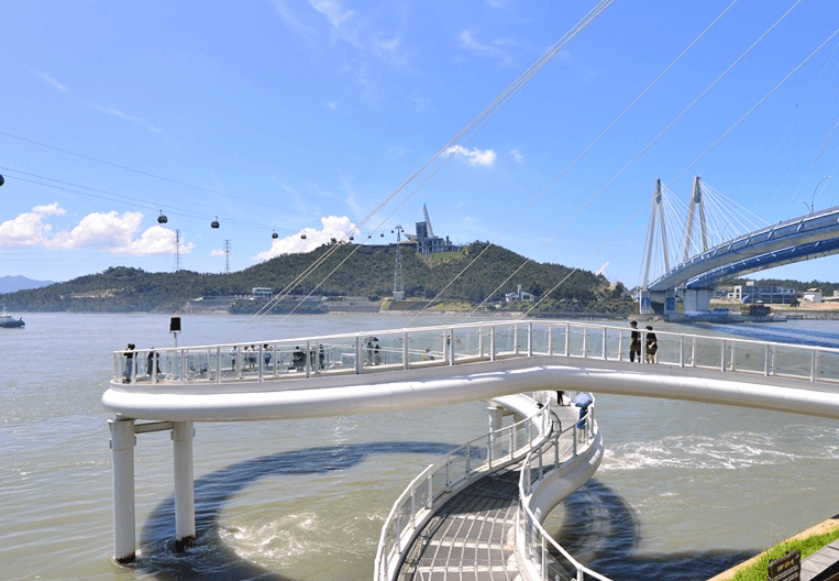 바다 위를 걷는듯한 스카이워크는 강풍이 부는 날은 다리가 흔들리기도 하고 바닥을 메탈 철망과 강화유리 등으로 만들어 발아래 회오리 치는 울돌목을 보면서 걷는다면 다시없을 추억으로 다가올 겁니다. 방문 시 반드시 울돌목의 시간표를 확인하여 울돌목만의 회오리를 볼 수 있다면 더없이 좋은 여행이 될 듯합니다.