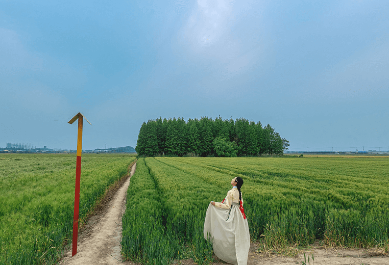 드넓게 펼쳐진 청보리밭에서 찍는 인생사진으로 유명한 옥녀 교차로 청보리밭은 SNS를 이용하는 MZ세대들의 사진명소로 유명합니다. 초록 청보리밭 가운데 길게 뻗은 메타세쿼이아 군락지는 최고의 인생샷 명당자리로 아름다운 풍경을 두 눈과 카메라에 담으로 전국에서 찾는 곳이기도 합니다. 사진 명소이기도 하지만 청보리밭 숲에서 불어오는 바람과 드넓은 청보리밭이 보여주는 상쾌함은 일상의 스트레스를 날리기에 최고의 장소입니다.