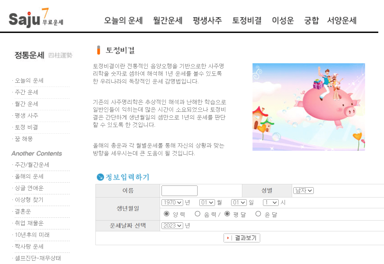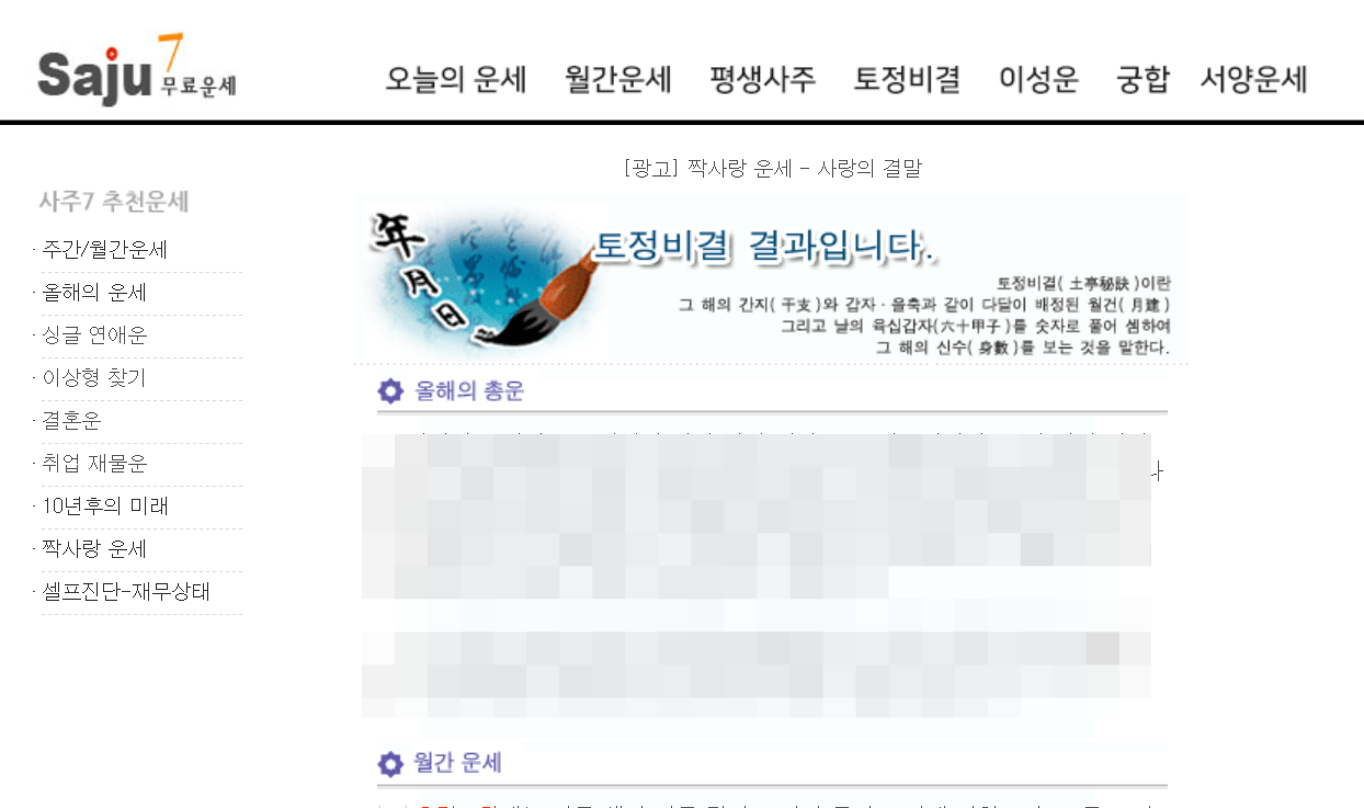 사주 7 역시 토정비결을 무료로 알려주며 이곳 역시 만만치 않은 곳입니다.