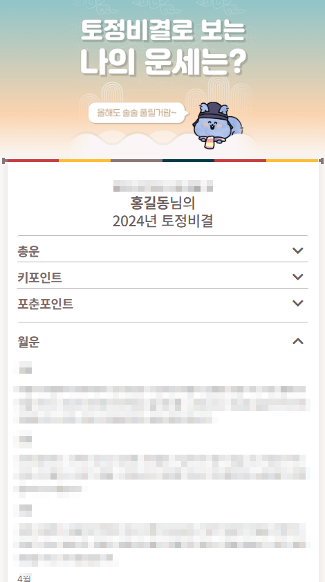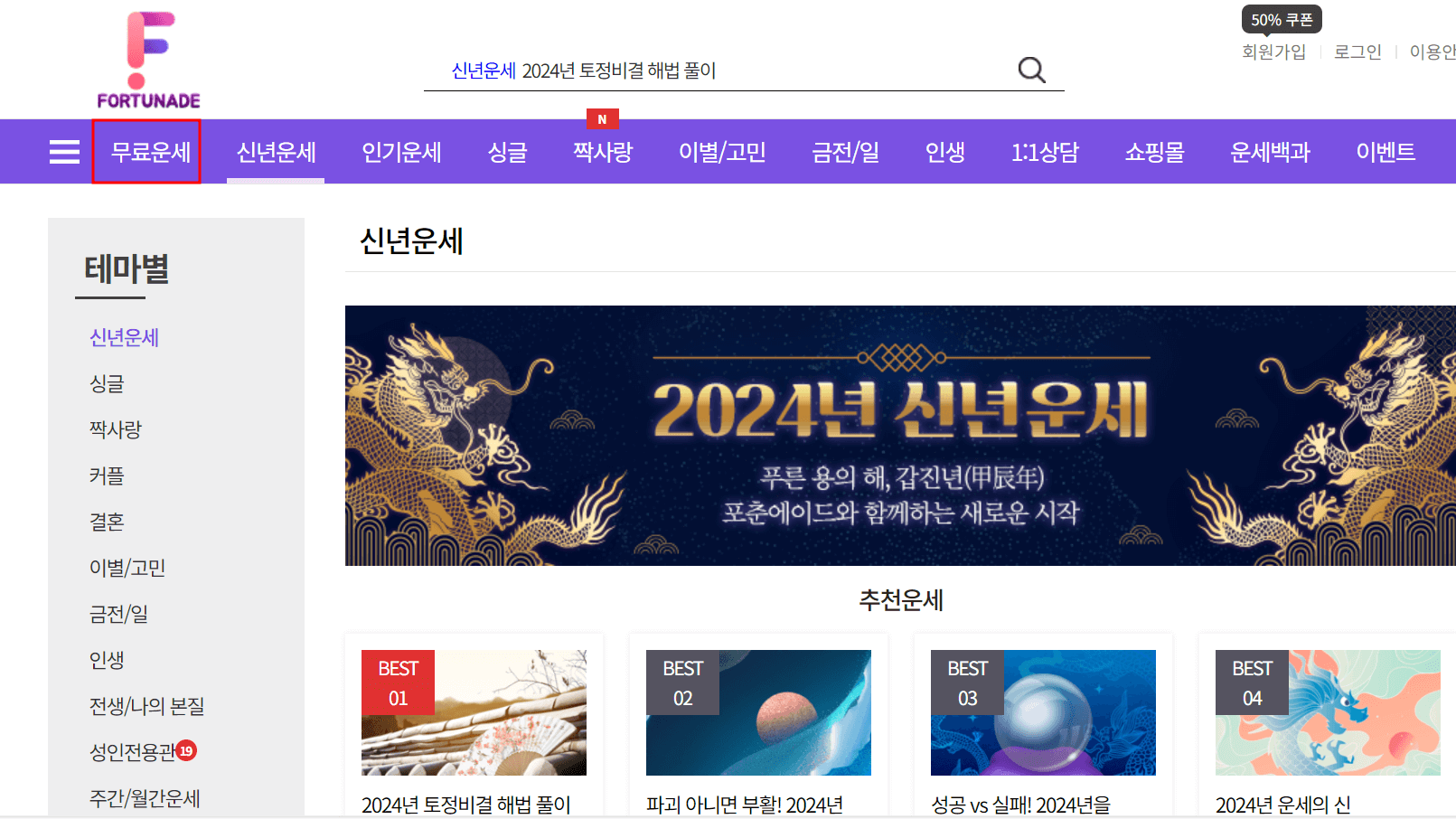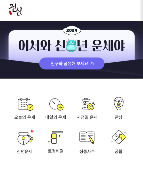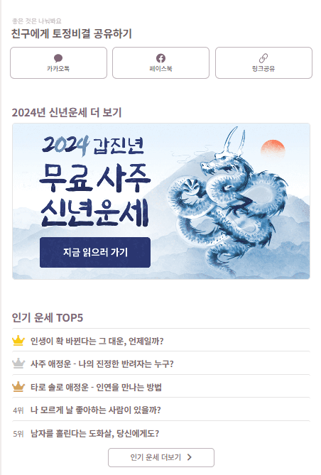 토정비결이나 신년운세 배너를 클릭, 2024년 토정비결 및 신년운세를 무료로 볼 수 있습니다. 물론 공짜로요