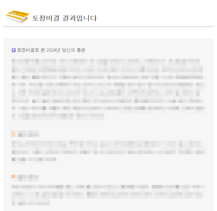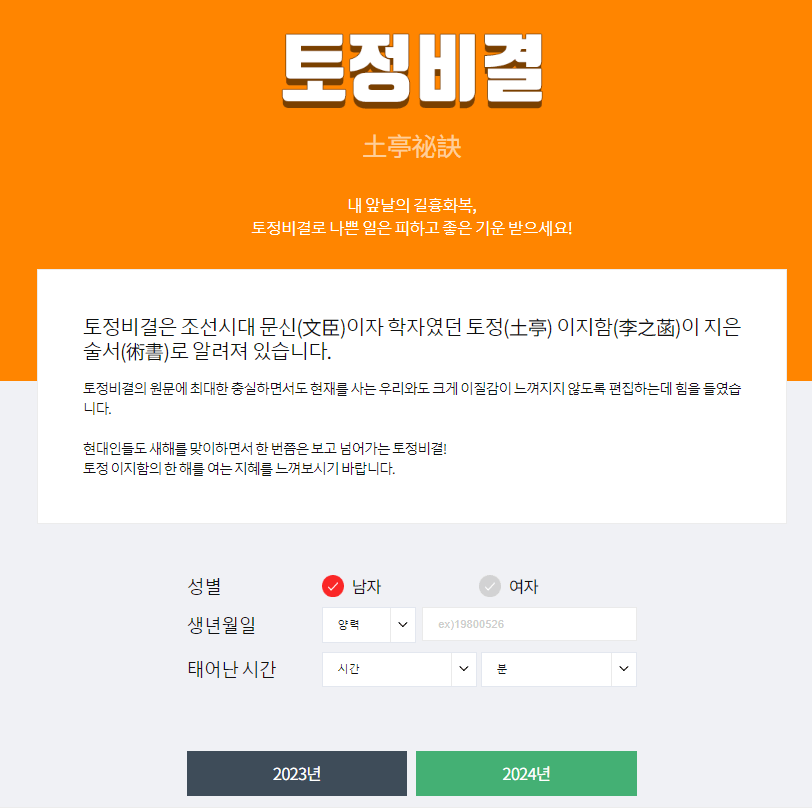 2024년 갑진년 토정비결 사이트