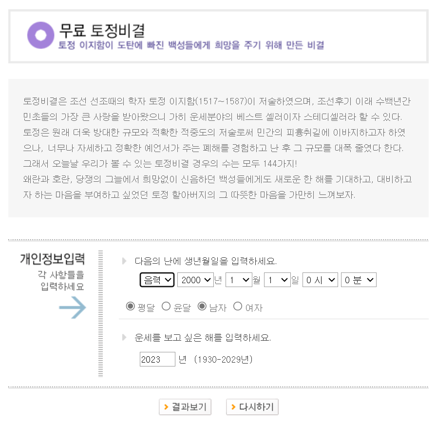 디지털 역술방 무료 토정비결